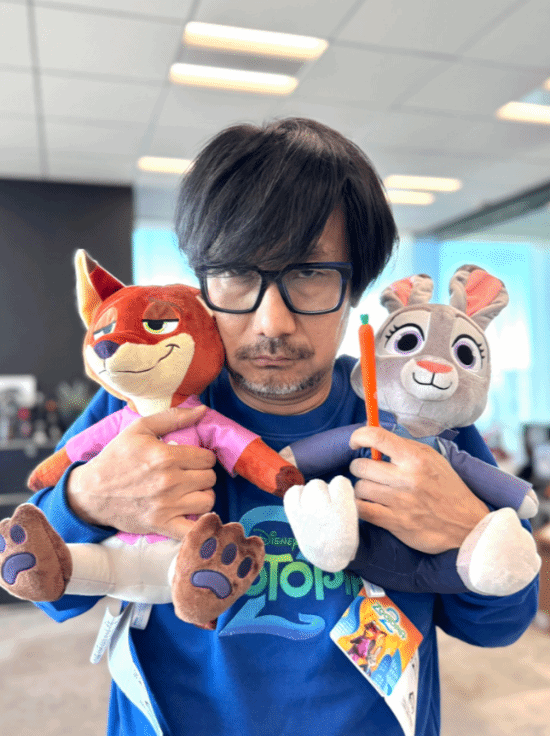 值得一提的是,知名游戏制作人小岛秀夫也参与《疯狂动物城2》的配音工作,为警察局的鼹鼠保罗献声,虽然戏份不多,但小岛秀夫表示能够参演已经非常荣幸。今日,小岛秀夫晒出了配音幕后照,手中拿着尼克和朱迪的玩偶十分可爱,鼹鼠保罗戴眼镜的外观似乎也神还原小岛秀夫的形象。