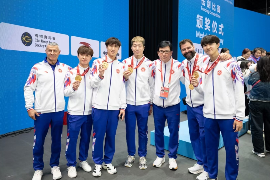 11月19日晚,香港启德体艺馆内再次沸腾了。在第十五届全运会男子花剑团体决赛中,由奥运冠军张家朗以及蔡俊彦、梁千雨组成的香港队以45比34击败福建队,摘得金牌。这也是香港队队史首枚全运会击剑金牌。