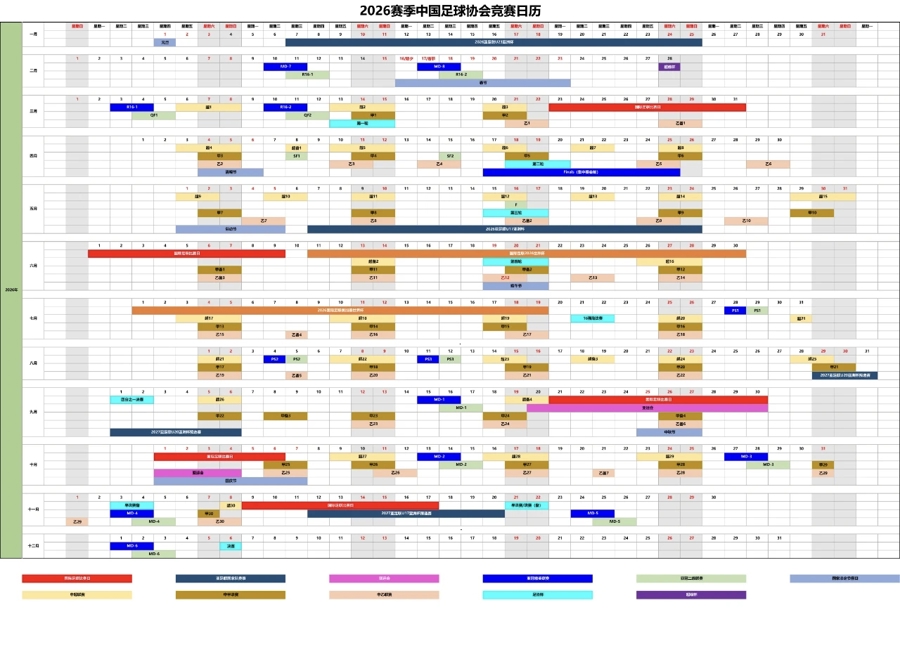 今天中午,中国足协官网发布《中国足协公布2026赛季竞赛日历》,明年中超联赛将从3月6日开打,不实行跨年赛制。同时强调,2026年联赛期间中国国家男子足球队依据国际足联窗口期备战参赛,不提前组织集训。