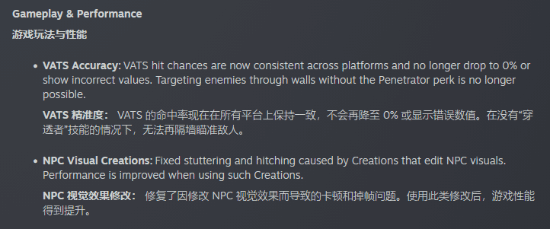 然而在昨天的更新补丁中,Bethesda终于承认,这并非玩家的错觉,也不是刻意设计的机制,而是的的确确在程序层面存在的bug。公告中写着“VATS的命中率现在在所有平台上保持一致,不会再降至0%或显示错误数值”。