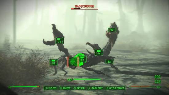 在《辐射4》中,有一个叫做“VATS”的战斗系统,你可以把他理解成是一种类似子弹时间的机制,可以减慢游戏时间并且允许玩家自由选择射击头部、躯干、四肢或是其他地方,是否命中则取决于概率。